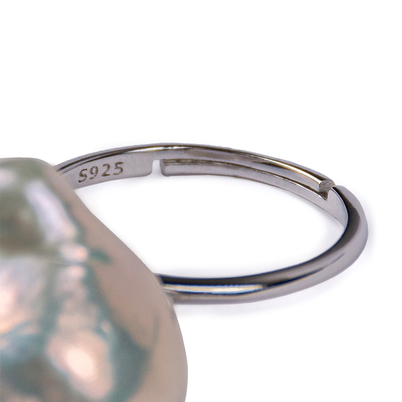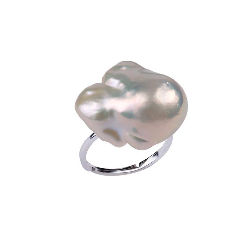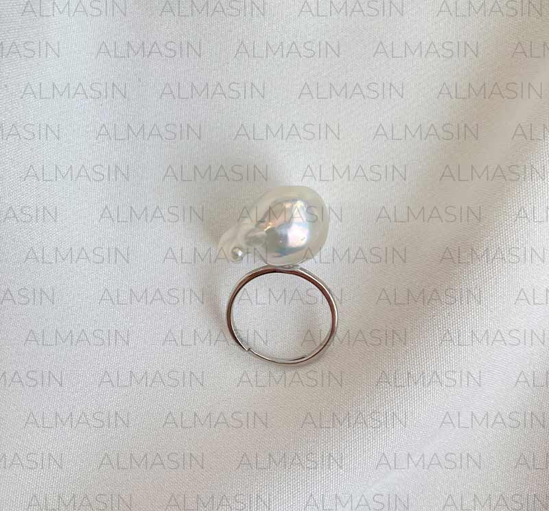 انگشتر مروارید پرورشی سفید باروک حدود ۱۴-۱۷ میلیمتر با نقره فری سایز.