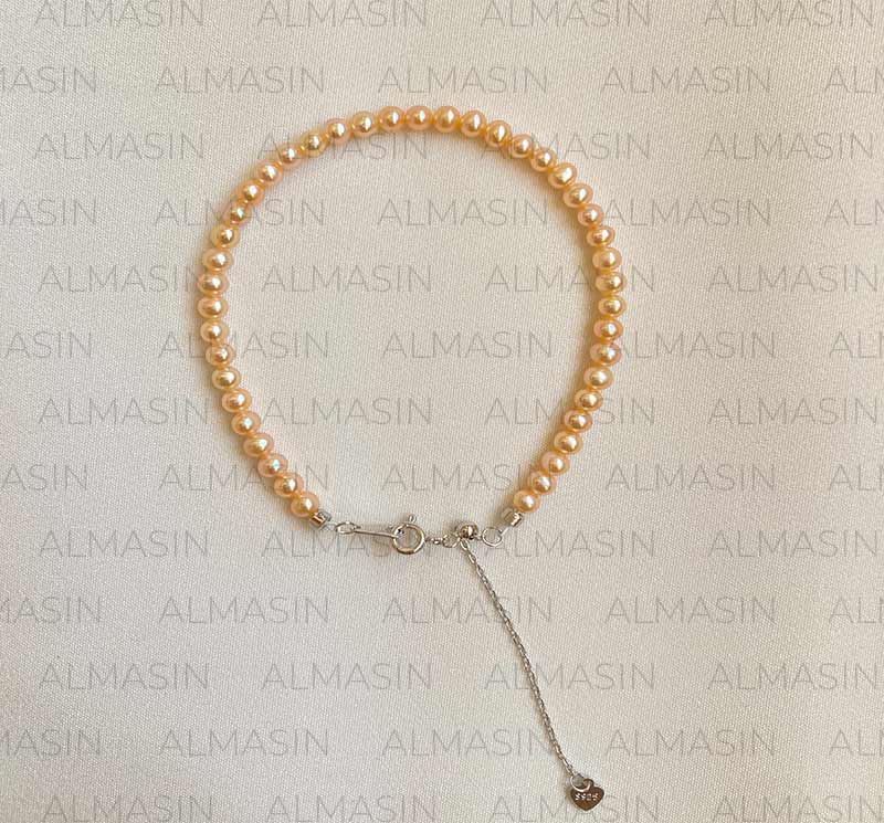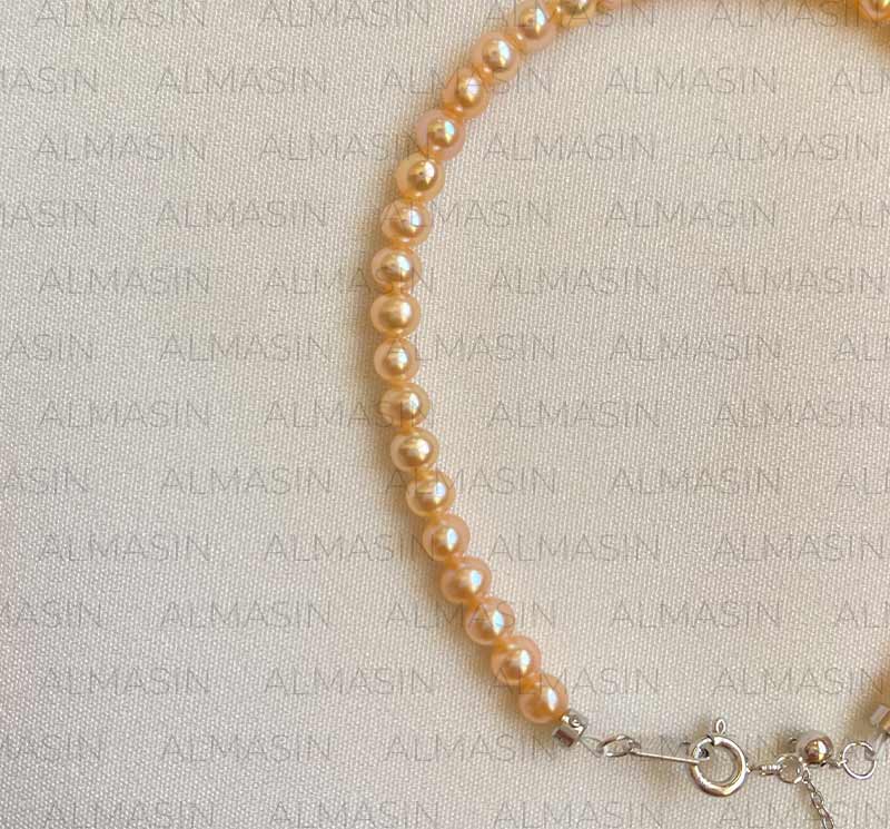 دستبند مروارید پرورشی گلبهی سایز ۵-۴ میلیمتر – برند الماسین