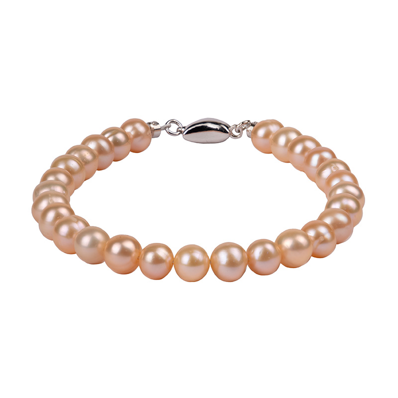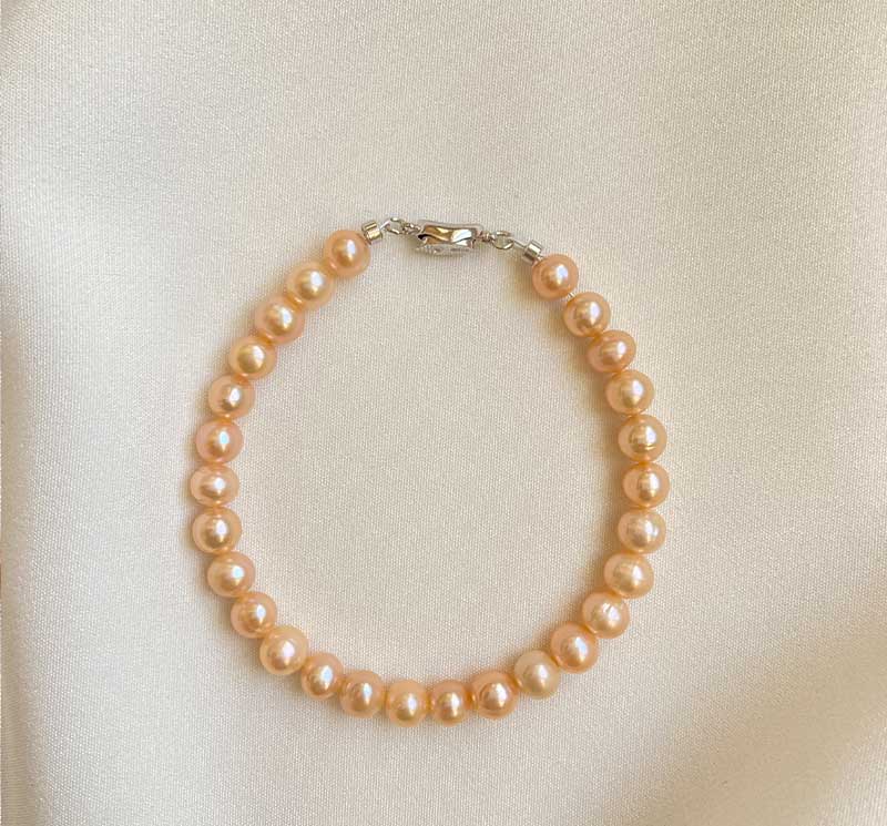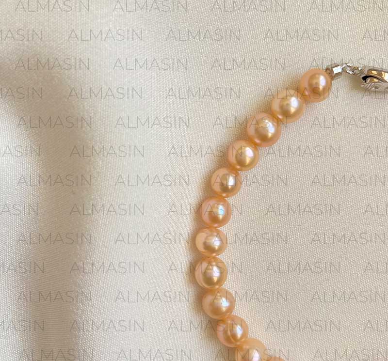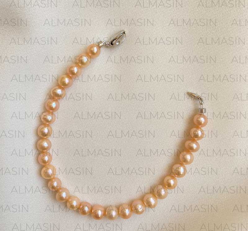 دستبند مروارید پرورشی گلبهی – سایز ۶میلیمتر با قفل جعبه ای نقره – برند الماسین