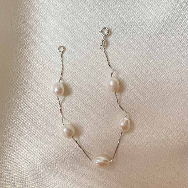 سایز هر مروارید ۷ میلیمتر بوده و توازن مناسبی بین ظرافت و جلوه بصری ایجاد میکند. طول دستبند ۱۷ سانتیمتر است و به قفل نقره اصل مجهز شده که علاوه بر زیبایی، دوام و کیفیت بالایی را تضمین میکند.
