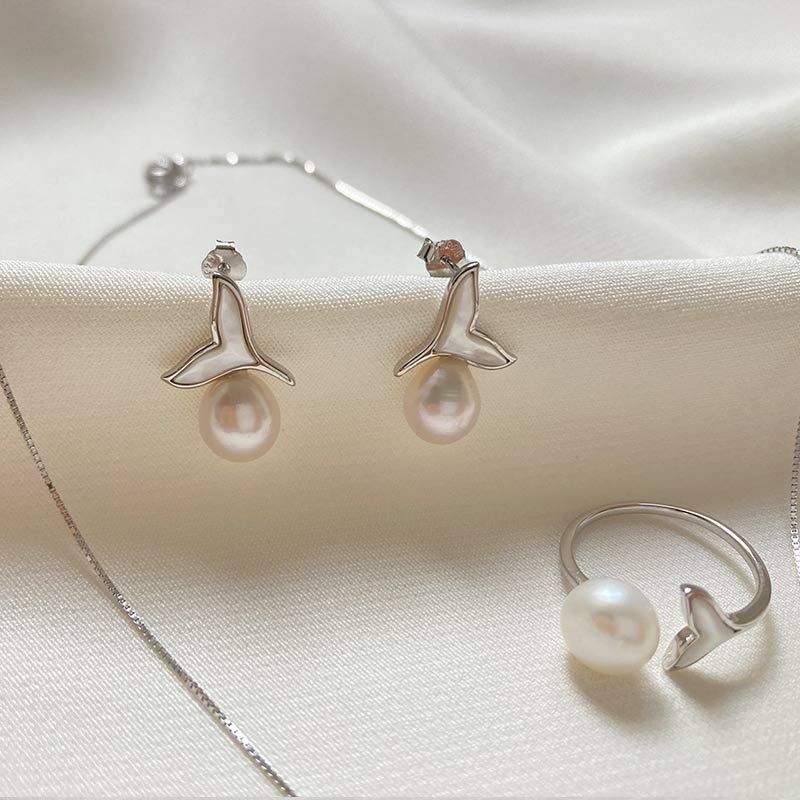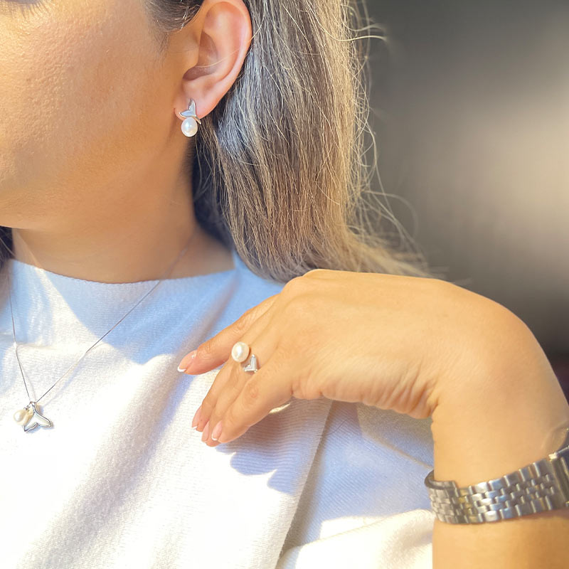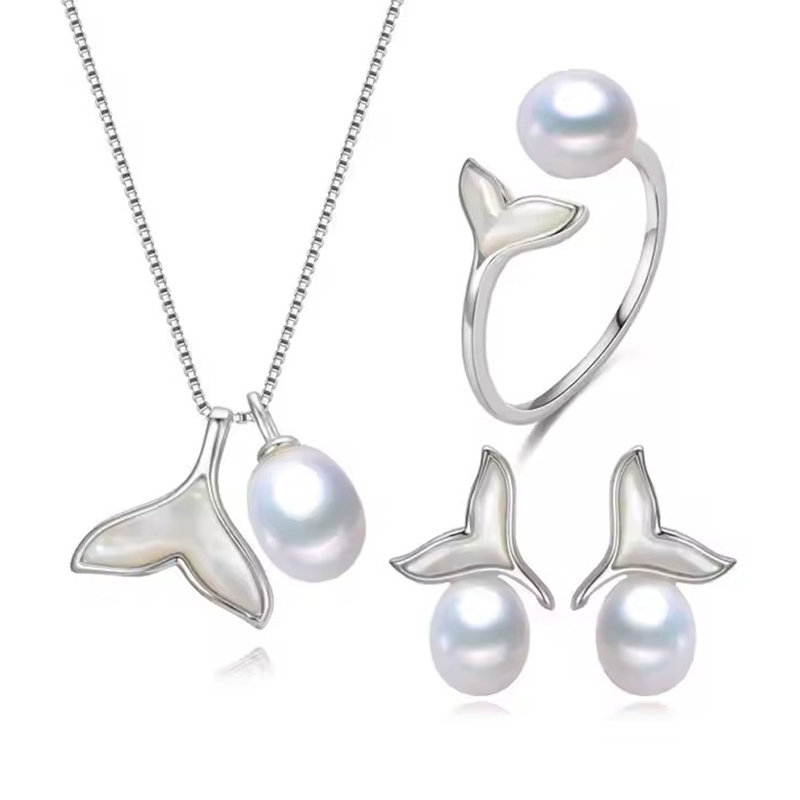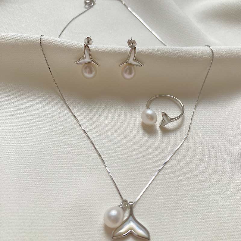 این ست شامل گردنبند به طول ۴۵ سانتیمتر، گوشواره و انگشتر فری سایز نقره بوده و تمامی اجزای فلزی آن از نقره اصل ساخته شدهاند. در طراحی این مجموعه از طرح وال الهام گرفته شده که نمادی از آرامش، قدرت و طبیعت دریا است. تزئینات بهکاررفته در این طرح از صدف طبیعی و نقره ساخته شده و در کنار مرواریدهای سفید درخشان، ترکیبی چشمنواز و خاص ایجاد میکند.