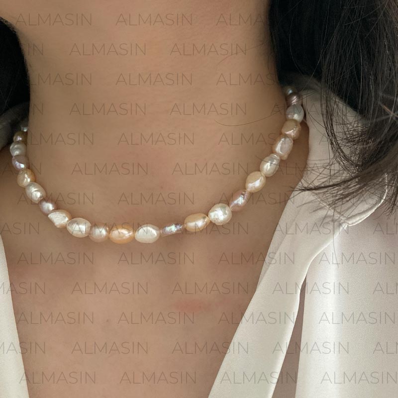 گردنبند مروارید باروک پرورشی مولتی کالر با سایز ۶ تا ۷ میلیمتر به طول ۳۹ سانت با قفل اکستندر تا ۴ سانتی متر افزایش طول، انتخابی خاص و هنری برای افرادی است که به زیورآلات متفاوت و طبیعی علاقهمند هستند. فرم نامنظم مرواریدهای باروک در کنار رنگهای متنوع و طبیعی، جلوهای منحصربهفرد و مدرن به این گردنبند بخشیده است.