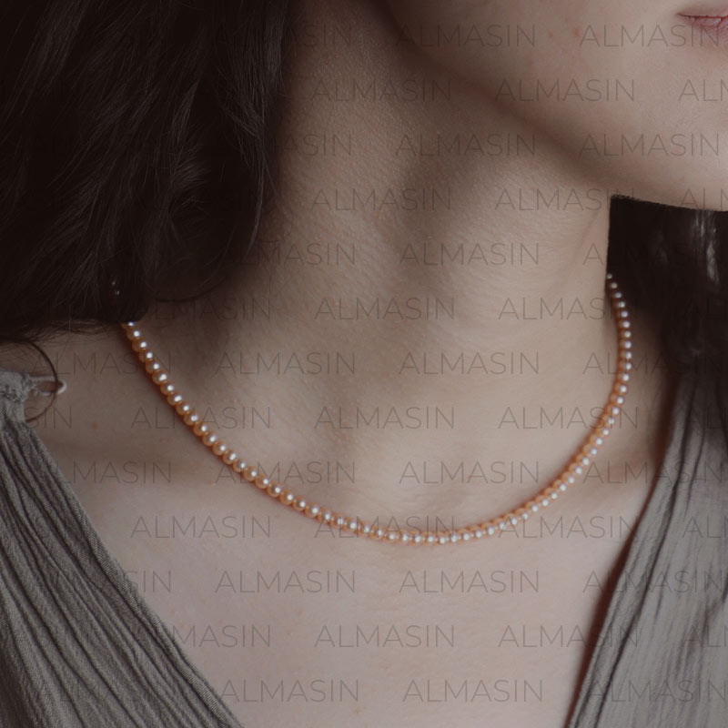 گردنبند مروارید پرورشی گلبهی سایز ۴–۵ میلیمتر برند الماسین | با قفل نقره و قابلیت تنظیم اندازه