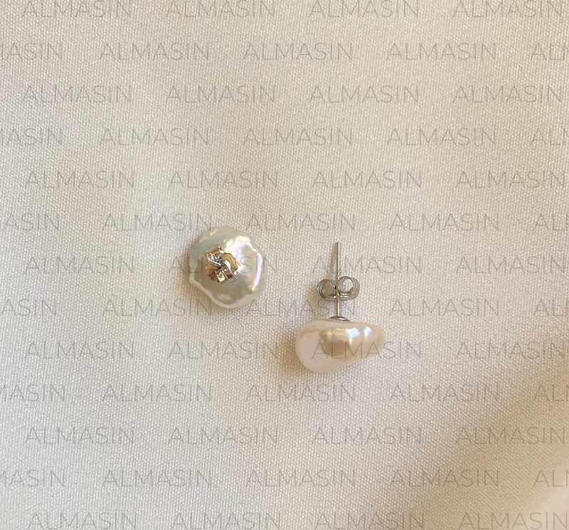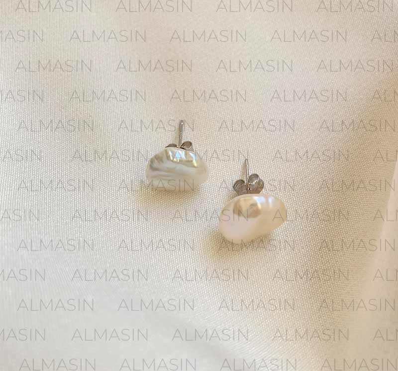 گوشواره مروارید باروک پرورشی میخی ۱۰-۹ میلیمتر سفید با نقره.