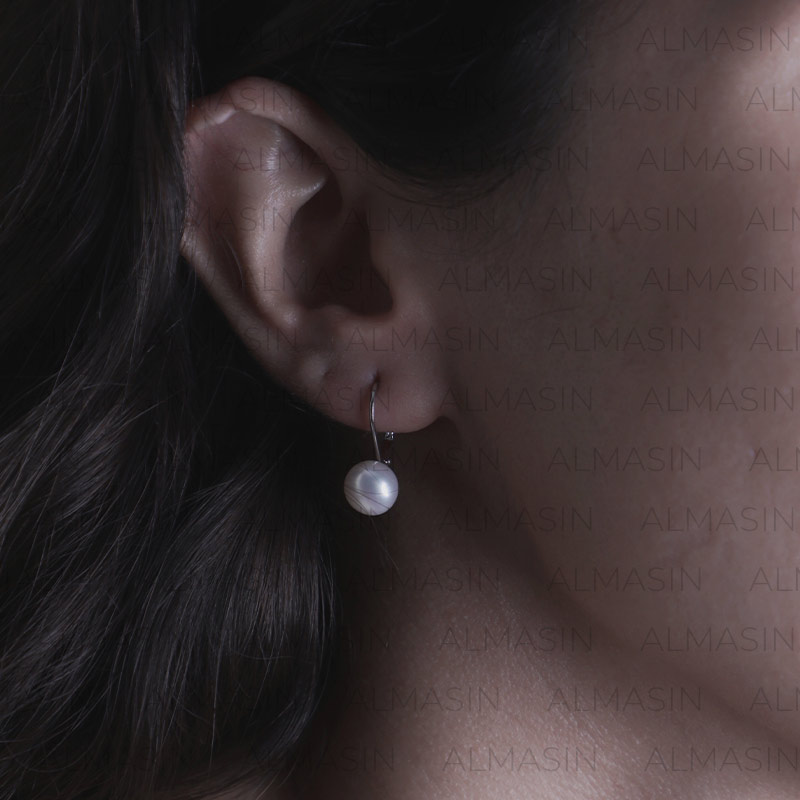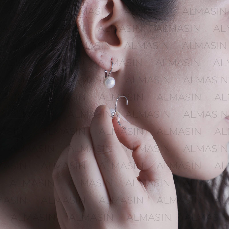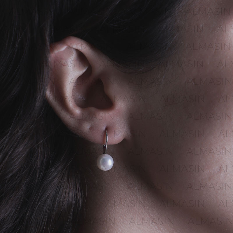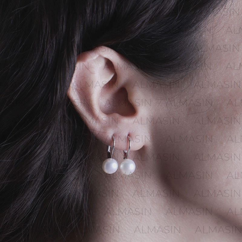 گوشواره مروارید پرورشی سفید سایز ۹-۸ میلیمتر با آویز نقره آبکاری درجه یک .